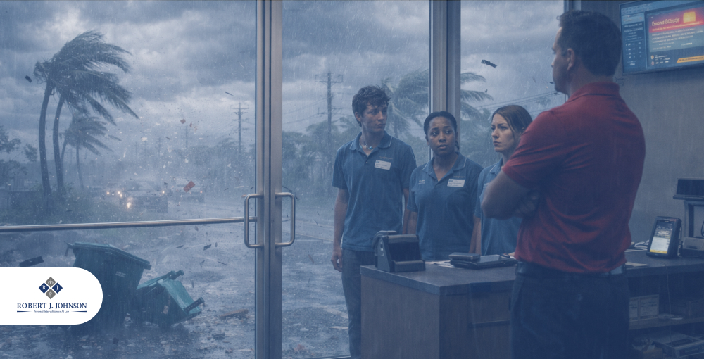 They knew the storm was coming. The news warned everyone for days. Failing to secure that property is a clear failure of their duty of care. It also applies to the inside of businesses. Gas stations and grocery stores are packed before a storm. They have a duty to make sure their floors are not slippery and their aisles are clear. If you slip and fall because they were too busy counting money to mop up a puddle near the entrance, they are liable for your injury.